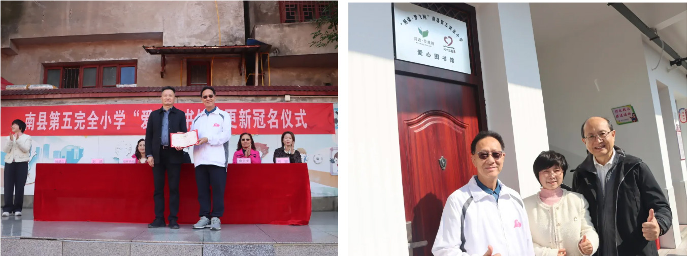 11月13日上午,赵副主席夫妇与周兴业夫妇、梦飞翔同事吴祎斐、龙薏甜,在南县第五完全小学出席“爱心图书馆”更新冠名仪式。期间,一行人观摩了绘本阅读教学课与阅读课,听取学校阅读工作专项汇报。